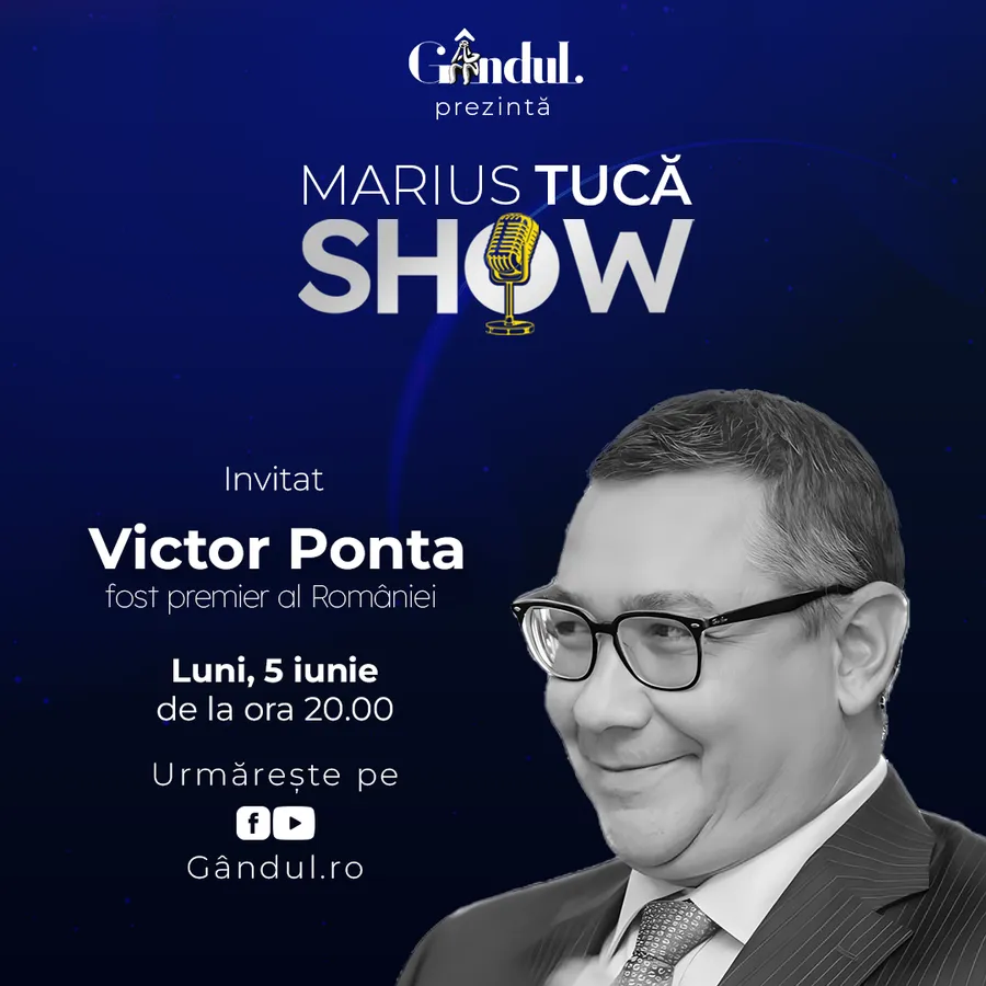 Invitatul zilei este Victor Ponta, fost premier al României. Emisiunea o puteți urmări pe gandul.ro, canalul de YouTube Gandul, pe paginile de Facebook Gandul și Marius Tucă și pe mariustuca.ro. ”Tineți aproape!”