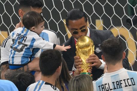 Unul dintre cei mai iscusiți măcelari din lume, turcul Nusret Gokce a intrat pe gazon și i-a agasat pe jucătorii Argentinei până a reușit să facă o poză cu trofeul Cupei Mondiale în brațe.