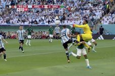 În momentul în care a sărit în aer pentru a prinde un balon trimis de argentinieni, Mohammed Al Owais, portarul Arabiei Saudite, l-a lovit cu genunchiul în gât pe coechipierul său Yasir Al Shahrani.