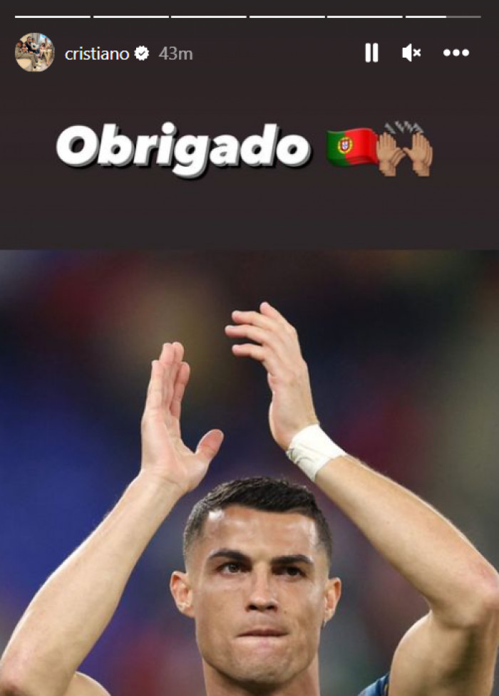 Câștigătorul a cinci Baloane de Aur a postat un story pe Instagram cu mesajul „Obrigado”, în traducere din portugheză „Mulțumesc”.