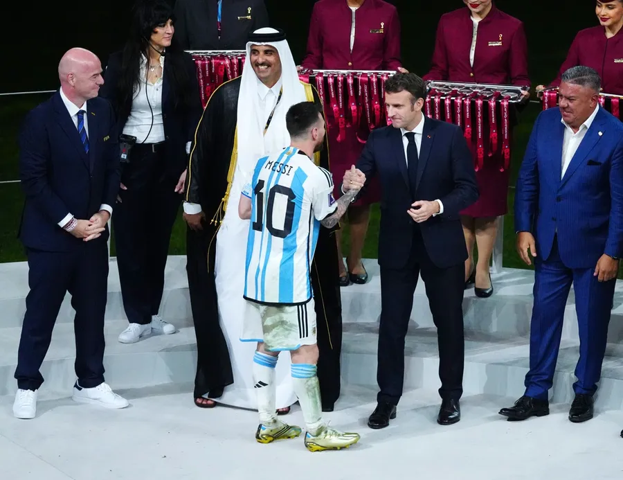 Ultimul care a apărut pe podium a fost Leo Messi, iar președintele francez nu a ezitat să îi întindă mâna în semn de respect. Starul în vârstă de 35 de ani nu s-a gândit nicio secundă și l-a salutat și el pe Emmanul Macron.