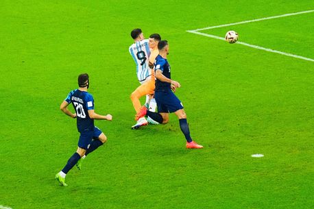 Josip Juranovic și Borna Sosa au încercat, pe rând, să îl oprească pe jucătorul lui Lionel Scaloni din drumul spre gol, însă nu au putut decât să respingă mingea înapoi în piciorul lui Alvarez.