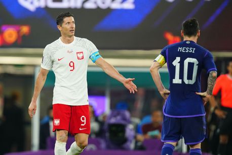 Lionel Messi of Argentina refuses the hand shake of Robert Lewandowski of Poland. Poland v Argentina, FIFA World Cup 2022, Group C, Football, Stadium 974, Doha, Qatar - 30 Nov 2022,Image: 741334640, License: Rights-managed, Restrictions: Editorial Use Only, Model Release: no