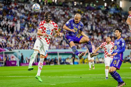 Min. 2: Ocazie Japonia! Taniguchi reia cu capul din careul croaților, dar balonul este respins de Livakovic.