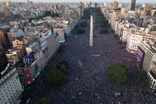 Planul organizatorilor a fost dat peste cap de numărul impresionant de suporteri, astfel că aceștia au fost nevoiți să zboare cu elicopterul peste celebrul Obelisc din Buenos Aires.