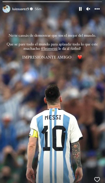 Luis Suarez, atacantul uruguayan în vârstă de 35 de ani, a postat un mesaj superb pentru prietenul său Lionel Messi, atacantul argentinian calificat în finala Cupei Mondiale din Qatar, după victoria cu Croația.