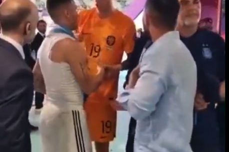 Finalul meciului de pe stadionul „Lusain Iconic” a fost unul tensionat. După ce argentinienii s-au bucurat în fața olandezilor, tensiunea s-a mutat în zona vestiarelor.