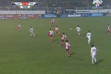 că în momentul pasei se afla înaintea ultimului fundaș dinamovist.