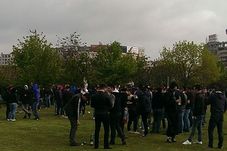 17:09 Steliștii s-au strâns în număr cât mai mare la Unirii. Acum sunt aproximativ 1000 de suporteri ai Peluzei Nord. Se scandează, se bea bere pe iarba verde, atmosfera fiind una relaxantă înaintea unui astfel de meci.