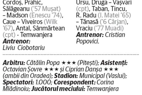 Același Antal pasează perfect către Madson, care vine lansat din spate și pune latul pentru 2-1 (23). Botoșaniul nu dă nicio emoție adversarului, arătând că a renunțat la a mai fi „revelația Ligii” și, retrasă în propria poartă, mai speră doar la un contraatac. Dar Vasluiul nu iartă nimic. Celeban centrează perfect în careu, de pe partea dreaptă, iar Temwanjera se înalță și zguduie din nou poarta oaspeților (57). Polonezul mai joacă o dată rolul de servant, de data asta către Antal, care nu ratează golul patru (82). Se termină 4-1. Nici că se putea răzbunare mai cruntă!