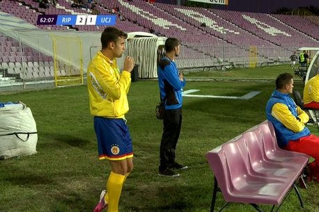 De aceea, condiția fizică a bănățenilor a trezit suspiciuni, mai ales după o fază observată de camerele TV pe marginea terenului, în minutul 62. Unul dintre fotbaliștii Ripensiei, aflați la încălzire în spatele unui panou publicitar, a fost surprins în timp ce sorbea dintr-o punguță asemănătoare cu cele pe care le folosesc în Liga I echipe ca Steaua sau revelația Ceahlăul.