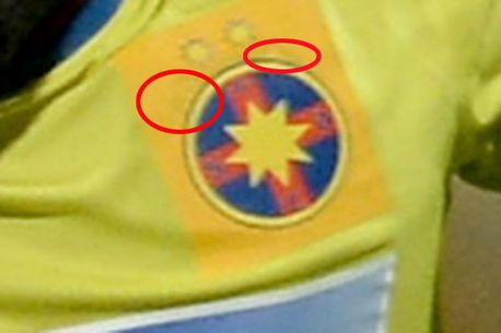 Steaua încă nu și-a adaptat echipamentul la decizia impusă de Înalta Curte de Casație și Justiție, deși a trecut mai bine de un an de când a fost dată. Emblema veche de pe echipamentul de rezervă este în continuare acoperită cu un autocolant cu noua siglă.