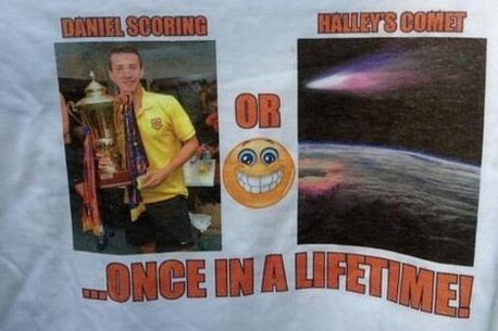 „Un gol al lui Daniel (n.r. Georgievski) sau apariția cometei Halley – evenimente singulare în viață!„, a fost tricoul special confecționat după primul gol al macedoneanului pentru roș-albaștri, în partida cu Ceahlăul din acest campionat. Numită după astronomul englez Edmond Halley, cometa poate fi observată la aproximativ 75 de ani; următoarea sa apariție este calculată pentru data de 28 iulie 2061, astfel că Georgievski poate sta liniștit – golurile sale nu sunt cu siguranță atât de rare :).