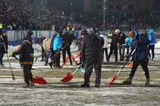 12:54 Nu mai e zăpadă, dar e noroi! Organizatorii au îndepărtat zăpada de gazonul de la Sibiu.