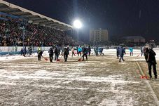 14:00 A început meciul care trebuia să se joace miercuri de la ora 18:30. Gazonul se prezintă în condiții mai bune doar dacă ne referim strict la zăpada care a dispărut de pe suprafața de joc. Altfel, gazonul va fi foarte greu pentru jucători, mocirlos, existând riscul unor accidentări nedorite.