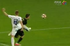 UPDATE Arbitrul Adrian Comănescu a mai dat un penalty inexistent și în debutul reprizei a doua. Budescu a intrat în careu, Bocșan a ridicat piciorul dar nu l-a lovit, decarul Astrei s-a trântit imediat la pământ și a acuzat o lovitură cu piciorul în figură, dar reluările arată că apărătorul bănățean nici măcar nu l-a atins pe Budescu.