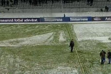 20:15 La Pitești ninge ca-n povești! Terenul este acoperit de zăpada care continuă să cadă. Liniile terenului se observă cu greu, dar organizatorii fac eforturi pentru ca meciul să se dispute în condiții cât mai bune. În acest sens, pentru a înlătura mai rapid zăpada de pe teren, ei au apelat și la ajutorul unor deținuți de la Penitenciarul Colibași.