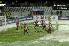 20:25 Așa arată terenul în aceste momente și s-ar putea să asistăm la un caz asemănător cu cel de la Brașov, unde, în weekend, începutul meciului dintre echipa locală și Viitorul a fost amânat cu o oră. Arbitrul partidei de la Pitești, Dragoș Istrate, a decis amânarea startului cu cinci minute.