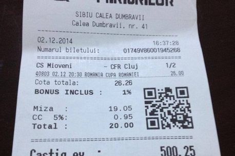 Cu 20 de lei mizați, norocosul parior a câștigat 500 de lei. Iată mai jos biletul câștigător