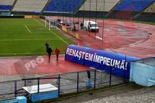 Tabloul de pe străzi rămâne în urmă și pornim în goana după noi tușe. Căutăm să intrăm în febra meciului chiar la stadion. Oare o fi febră!? Poate da. Poate nu. Și pătrundem. Pavel Badea vorbește cu Rodion Cămătaru. Așteaptă o întâlnire cu reporterii. „Aveți emoții?”, vine întrebarea unui jurnalist. Ridică din umeri, ușor impasibili, și reacția lor te face să te întrebi dacă nu cumva informația că se demolează stadionul „Ion Oblemenco” e falsă. Nu este! Doar că o ușoară senzație de saturație se simte și în comportamentul lor. Odată vedete ale unei echipe iubite de un oraș întreg, acum sunt imaginile unui club care a apărut controversat, cu banii unei Primării care nu a ezitat să folosească o echipă-simbol ca pe o mașinărie electorală. Dovadă stau afișele de culoare roșie chiar în mijlocul unei baze sportive care tot timpul a avut doar două culori: alb și albastru.