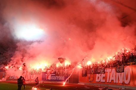 După ce în startul jocului au realizat o scenografie specială, cu motive patriotice, în debutul reprizei secunde, fanii Universității Cluj au pus în scenă și un show pirotehnic de excepție, realizat cu ajutorul multor torțe și fumigene. Mai mult, fanii „șepcilor roșii” care au făcut deplasarea, în număr foarte mare și însoțiți și de „frații” de la Dinamo, au apelat și la mai multe artificii, care au generat un efect vizual extrem de spectaculos, după cum se poate observa în clipul video postat pe pagina de Facebook a celor de la „Revista Ultra”.