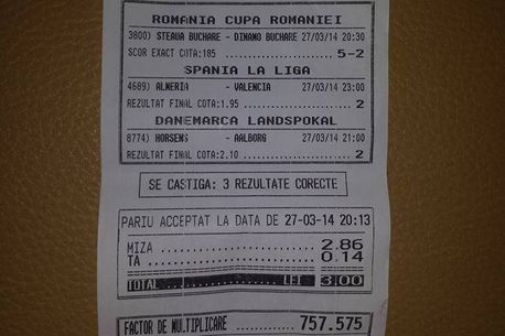 Dacă partida din Cupa Danemarcei, dintre Horsens și Aalborg s-a încheiat cu victoria oaspeților (1-3), așa cum și anticipase, în schimb meciul din Primera Division, dintre Almeria și Valencia (2-2) a fost cel care i-a închis biletul. Bucureșteanul mizase pe un succes al „liliecilor”, însă aceștia au avut o repriză secundă de coșmar în fața codașei din Spania și nu au reușit să obțină decât un egal.