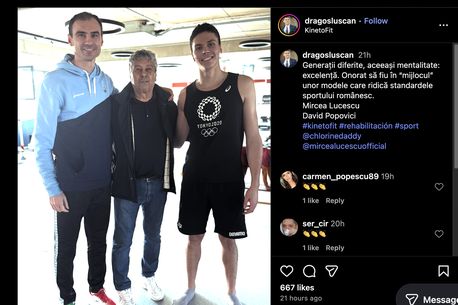 „Generații diferite, aceeași mentalitate: excelență. Onorat să fiu în „mijlocul” unor modele care ridică standardele sportului românesc. Mircea Lucescu și David Popovici”, a scris Dragoș Luscan, parte a staff-ului David Popovici, pe pagina sa de Instagram.