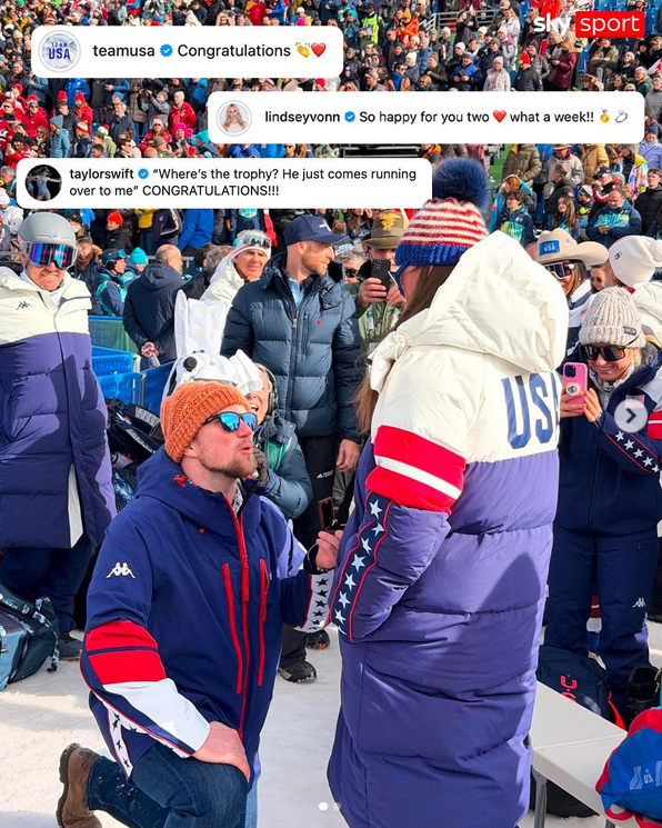 Felicitări au venit și din partea compatriotelor australiene Lindsey Vonn și Taylor Swift, a cărei melodie a fost aleasă drept ‘coloană sonoră’ a propunerii în căsătorie”, a scris Sky Sport.