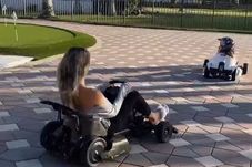 La vederea mașinuțelor de kart, fosta soție a lui Cristi Borcea s-a arătat foarte încântată și s-a urcat imediat la volanul unuia dintre ele, dând câteva ture, fără să scape, însă, din ochi, copilul aflat în kartul din fața ei.