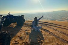 Într-una dintre capturi, Ioana se află pe una dintre plajele spectaculoase din Dubai, la scurt timp după apus, iar în spate are o priveliște de vis, cu zgârie-norii specifici Emiratelor.