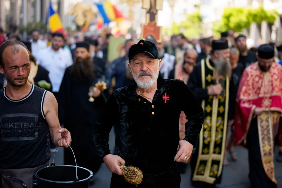 Gigi Becali merge in timpul unei contramanifestatii organizate de asociatia ”Fratia Ortodoxa” fata de marsul comunitatii LGBTQ+ ”Bucharest Pride 2025”, in Bucuresti, duminica, 8 iunie 2025. Aproximativ 100 de persoane purtand cruci, icoane si agheasma au participat, duminica, la un mars de ”izgonire a duhurilor necurate lasate in urma de parada LGBTQ” conform organizatorilor, pe acelasi traseu ca participantii la Bucharest Pride 2025. ANDREEA ALEXANDRU / MEDIAFAX FOTO