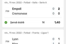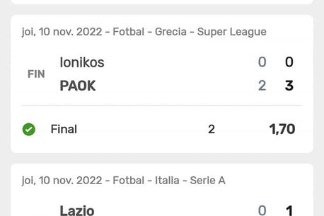 Verona – Juventus (0-1), Rayo Vallecano – Celta Vigo (0-0), Ionikos – PAOK Salonic (0-3), Lazio – Monza 1-0, Sepsi – Petrolul (2-0), Borussia Monchengladbach – Borussia Dortmund (4-2), Empoli – Cremonese (2-0), Lyon – Nice (1-1), Npoli – Udinese (3-2), Werder Bremen – RB Leipzig (1-2), Leverkusen – Stuttgart (2-0), Liverpool – Southampton (3-1), Basaksehir – Galatasaray (0-7), Emmen – Ajax (3-3), Boavista – FC Porto (1-4), Dinamo – CSC Dumbrăvița (4-1), Club Brugge – Antwerp (2-2), Mainz – Eintracht (1-1),CS Mioveni – CFR Cluj (0-1) și U Craiova – FCSB (0-2) sunt meciurile care i-au adus norocosului câștigător 2 milioane de euro.