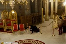 Miliardarul apare în imaginile transmise în direct, în genunchi și cu capul plecat la slujba organizată cu ocazia Sfintelor Paști. Becali se afla într-o parte laterală a bisericii, notează Fanatik.