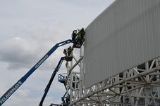 „Încă puțin și fațada patinoarului Berceni Arena va fi gata. Zilele acestea se montează ultimele elemente ale structurii arhitecturale, care îmbracă complexul sportiv la exterior.