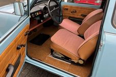 Trabantul P601 S de Luxe, un model în care toate piesele sunt originale, fără semne de folosire a mașinii, de un albastru culoarea cerului senin, cu țesătura impecabilă, are doar 9 kilometri în bord.