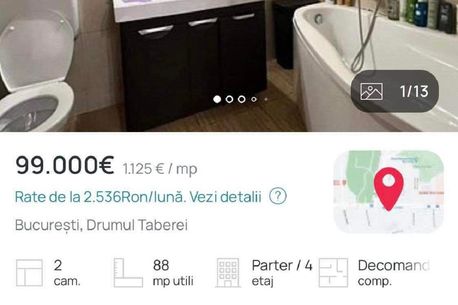 După ce a achiziționat apartamentul cu 80.000 de euro și a mai investit în el 20.000 de euro, Daniela Crudu l-a scos la vânzare cu 99.000 de euro, cu 8.000 de euro mai mult față de cât se vând apartamentele similare în zona respectivă.