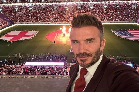 Artistul a apărut cu un tricou al lui Manchester United, imprimat cu numărul 7 și cu numele actualului patron de la Inter Miami. În plus, acesta și-a pus o perucă blondă, cu părul lung, pentru a ironiza tunsoarea pe care o avea englezul pe vremea când îmbrăca tricoul „diavolilor roșii”.