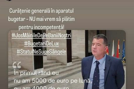 „Curățenie generală în aparatul bugetar! Nu mai vrem să plătim pentru incompetență! Jos mâinile de pe banii noștri! Bugetari de lux! Statul ne suge sângele!” a fost mesajul publicat de Diana Șucu pe contul personal de Instagram.