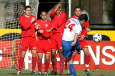 Daniel Niculae si Nana Falemi în meciul de fotbal dintre Steaua Bucuresti si Rapid Bucuresti, din cadrul Diviziei A, desfasurat pe stadionul Steaua-Ghencea din Bucuresti, pe 21 aprilie 2004