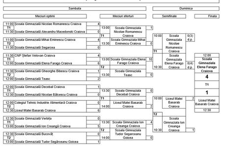 Dupa ce sambata, in prima zi a turneului, favoritele au castigat la pas, duminica, semifinalele au fost foarte echilibrate, una dintre ele terminandu-se la penalty-uri. Finala a adus fata in fata doua echipe din Craiova: Scoala Gimnaziala „Elena Farago” si Liceul „Matei Basarab”. Cei de la „Elena Farago” au castigat cu scorul de 4:1 un meci in care cel mai bun jucator al turneului, Radu Paduretu, a marcat de 3 ori.
