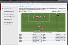 Și la partea tactică s-a lucrat. Acum puteți alege până la 3 tactici preferate, cu care vă veți obișnui jucătorii și pe care le puteți folosi atunci când doriți. Tot la capitolul tactică, puteți controla mai bine fazele fixe, datorită noului editor pentru cornere, lovituri libere, auturi și penaltiuri. Editorul se poate găsi dând click pe butonul Tactic de lângă Selection, opțiunea Edit > Set Pieces.