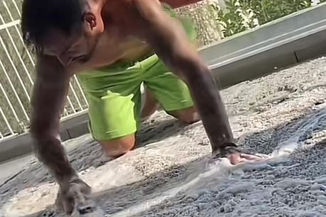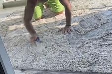 Tânăra l-a surprins pe Aris Soiledis, fostul fundaș stânga al lui Gigi Becali, în timp ce spăla un covor pe balconul apartamentului în care locuiesc. Imaginile au fost urcate de Maria pe rețelele de socializare și au devenit rapid virale.