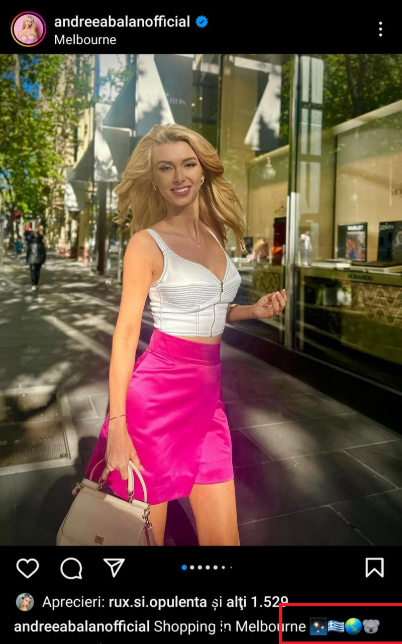 Andreea Bălan (39 de ani) profit din plin de perioada petrecută în Australia, însă cântăreața din România a comis o eroare uriașă în momentul în care a vrut să împărtășească cu prietenii săi virtuali imagini de la o sesiune de shopping.