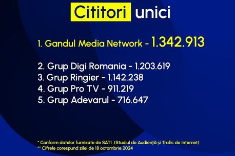 Vineri, 18 octombrie 2024, grupul Gândul Media Network a redevenit grupul de presă nr. 1 din România. Site-urile din cadrul grupului au înregistrat, în total, cel mai mare număr de clienți unici, devansând grupuri precum Digi România, Ringier, Pro TV sau Adevărul.