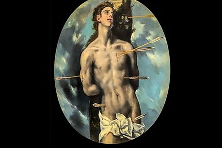 El Greco l-a reprezentat pe sfântul Sebastian legat de un trunchi de copac și străpuns de săgeți. Are o atitudine contemplativă. Ca în alte opere ale artistului, corpul e înalt, suplu și cu membre prelungi. Potrivit istoricilor, această pictură reprezintă o simbolizare a credințe neînfricate a Spaniei din acele vremuri.