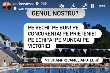 „Azi mi-am început ziua cu această fată minunată, care ne-a adus multora bucurie! Mulțumesc @cameliapotec că ai chef sa înotăm împreună. «Orice, dar nu bras» -zice ea! «Orice, dar nu crawl»- am zis eu! Eu, pentru că am umărul drept stricat…. deocamdată.