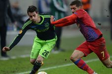 Barcelona's Lionel Messi from Argentina, right, celebrates with Isaac Cuenca, left, and Barcelona's Thiago Alcantara from Spain, center, after scoring against Malaga during his Spanish La Liga soccer match at Rosaleda stadium in Malaga, Spain, Sunday, Jan. 22, 2012.,Image: 593331753, License: Rights-managed, Restrictions: This content is intended for editorial use only. For other uses, additional clearances may be required., Model Release: no, Pictured: Isaac Cuenca,Lionel Messi,Lionel Messi; Thiago Alcantara; Isaac Cuenca,Thiago