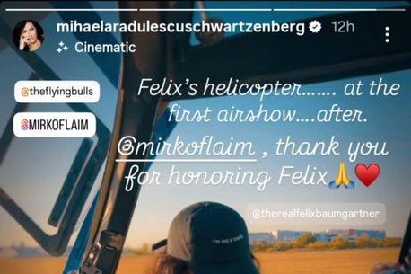 „Elicopterul lui Felix… la primul spectacol aviatic… după. Mirko Flaim, mulțumesc că îl onorezi pe Felix”, a transmis Mihaela Rădulescu pe secțiunea story a contului de instagram.