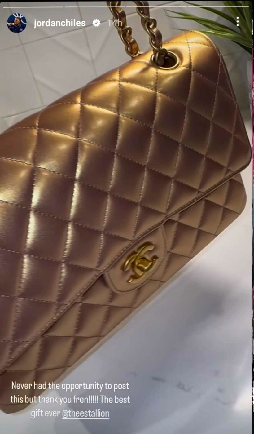 Jordan Chiles a primit un cadou impresionant din partea lui Megan Thee Stallion, o geantă Chanel care poate ajunge la un preț și de 10.000 de euro, cu mesajul de mulțumire pentru cântăreață: „Nu am avut oportunitatea să postez asta, dar mulțumesc, prietena mea! Cel mai frumos cadou”, este mesajul transmis de Jordan Chiles prin intermediul Instagram, la secțiunea de story.