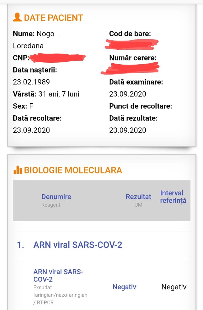 „Marți, am o nouă programare pentru test. Am făcut-o cu o săptămâna înainte pentru că joia viitoare trebuie să plec în Turcia pentru o întâlnire și un posibil transfer, și am vrut să fiu liniștită, mai ales că o să am contact la un club, chiar dacă nu se cere acel test la intrarea în țara respectivă. Mi s-a comunicat că nu e posibil să merg să îmi fac acel test, pentru că trebuie să stau în carantină. Cum poți să obligi prin lege un om sănătos să rămână în aceeași locuință cu un om bolnav? Unde este evitarea răspândirii despre care se vorbește în România?